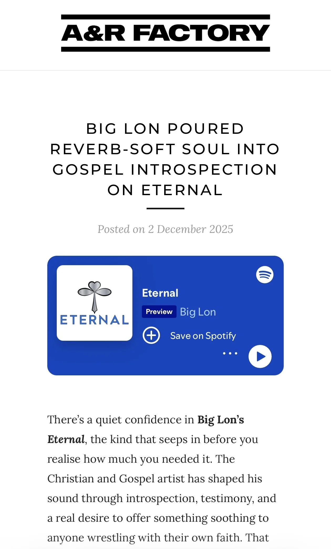 A&R Factory Article